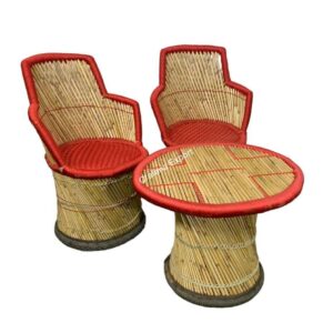 Cane Bunai Chairs Table Set of 3 | Apple Chairs Table for Living Room/Hotel/Cafe