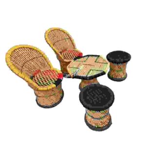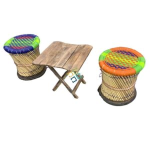 Natural 2 seater bench with pidha set of 2 for balcony /living room/cafe/restaurant