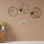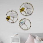 Round Ring shaped wall art panel with flower design for home decor set of 3
