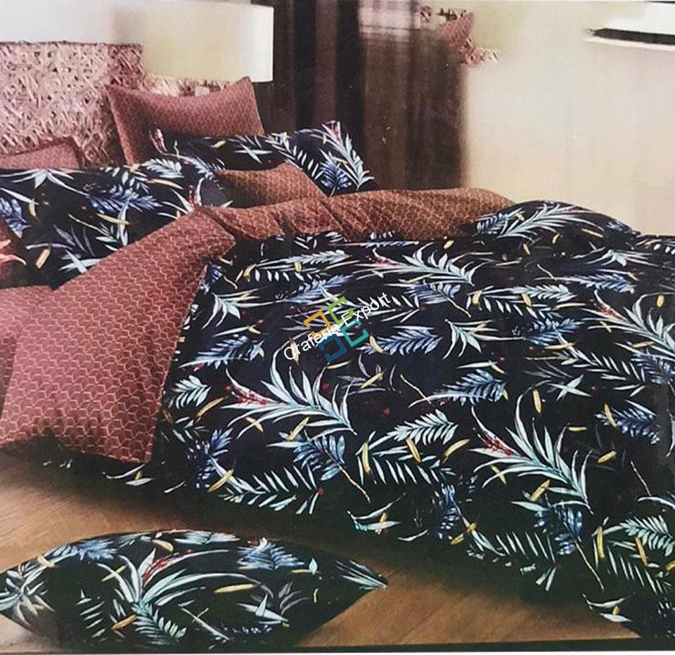 Black Colour Bedsheet Bedspread with beautiful leaf print