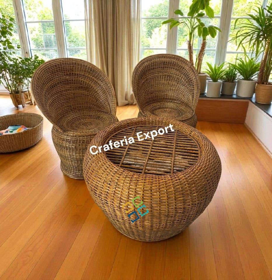• Elevate your living space or commercial area with the stylish Cane Bunai Chairs Table Set of 3, featuring the elegant Apple Chairs Table design.