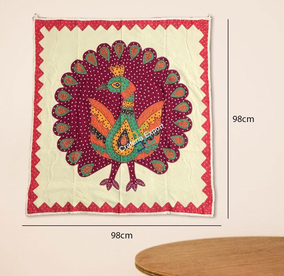 Dancing Peacock Patch Work Wall Hanging/Cloth/ Throw Cover
